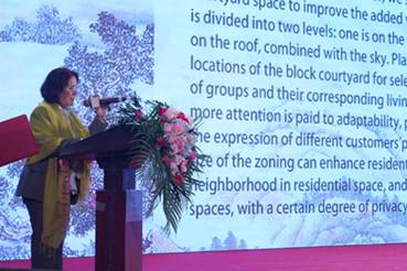 來(lái)自哈佛大學(xué)設(shè)計(jì)學(xué)院,為西班牙馬德里足球城、布宜諾斯艾利斯港重建等全球多個(gè)重大項(xiàng)目,提供規(guī)劃設(shè)計(jì)方案,美國(guó)頂端設(shè)計(jì)大師Lyzabethfiore,作為萬(wàn)光·中華城的主持設(shè)計(jì),向來(lái)賓們系統(tǒng)闡述新中式建筑、新中式園林、新中式生活的匠心設(shè)計(jì)。萊山首座低密住區(qū),全高端改善戶(hù)型,只在18%土地進(jìn)行建筑,近60%區(qū)域?yàn)榈蛯雍投鄬友蠓浚?span lang="EN-US">8000㎡乾隆花園規(guī)制中心園林等創(chuàng)新設(shè)計(jì),贏得了在場(chǎng)所有來(lái)賓的掌聲。