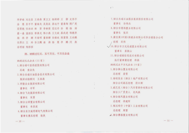 萬光城建董事長姜振山應(yīng)邀出席會議,萬光城建子公司煙臺市萬光兆瑞置業(yè)有限公司以突出業(yè)績被授予“納稅過億元企業(yè)”獎。同時,萬光城建公司及萬光城建下屬萬光建筑公司也被授予“納稅過千萬元企業(yè)”獎。2019年全年,萬光城建在董事長姜振山帶領(lǐng)下,企業(yè)各項事業(yè)平穩(wěn)健康發(fā)展,萬光城建及建旭房地產(chǎn)、山東萬光房地產(chǎn)、建筑公司、物業(yè)公司、小貸公司、誠潤超市、古文化城等分(子)公司合并納稅額超過1.85億元人民幣,取得了社會及經(jīng)濟效益的雙豐收。