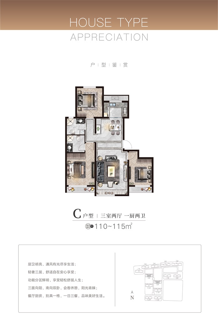 項(xiàng)目首期C地塊規(guī)劃總建筑面積15.56萬(wàn)平方米,總戶(hù)數(shù)1100戶(hù),停車(chē)位1238個(gè),現(xiàn)已全部售罄。目前正在銷(xiāo)售的B地塊總建筑面積22.57萬(wàn)平米,總戶(hù)數(shù)約962戶(hù),主力戶(hù)型為95-148平方米的精質(zhì)三居/四居,均為一梯兩戶(hù)、南北通透的小高層現(xiàn)房。