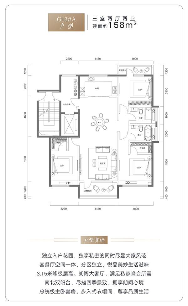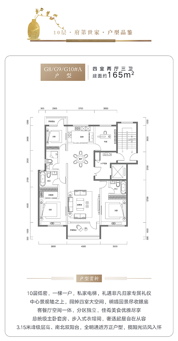 作為萬光城建25年的旗艦作品,萬光中華城傳承中國傳統(tǒng)文化,采用獨(dú)特的新中式建筑風(fēng)格,北高南低,東高西低堪輿環(huán)境布局,中軸對稱,四角平直,齊整劃一,無缺角,無凸角,展現(xiàn)天人合一的中式居住文化,堪為中國傳統(tǒng)風(fēng)水學(xué)當(dāng)代標(biāo)桿作品。項(xiàng)目將中國建筑精髓與現(xiàn)代審美需求結(jié)合,在建筑規(guī)劃中強(qiáng)調(diào)門第、街巷等理念,巧妙地將中國建筑的灰墻、磚瓦、屋檐的建筑手法融入社區(qū),打造符合現(xiàn)代審美情趣和居住需求的新人居建筑經(jīng)典。小區(qū)高層、小高層、多層、洋房、公館、別墅科學(xué)布置,南向開窗比例達(dá)到50%,容積率只有1.87,通風(fēng)、透光性能良好,全部一梯一戶設(shè)計(jì)讓居家私密性保護(hù)更加完善。為提高業(yè)主的居住舒適性,萬光中華城不惜犧牲可建層數(shù)換取每戶層高增加,5層公館的層高達(dá)到3.2米,高層和小高層的層高達(dá)到3.15米,萬光中華城精品的5層庭院公館,更是獨(dú)創(chuàng)獨(dú)棟10戶設(shè)計(jì)、南向單元入戶、南向4開間、22米超長采光面寬,地上地下雙精裝大堂,多重智能人臉識別系統(tǒng),戶戶有寬庭,家家有闊院,精雕細(xì)琢為煙臺奉獻(xiàn)一座中式家族大宅。